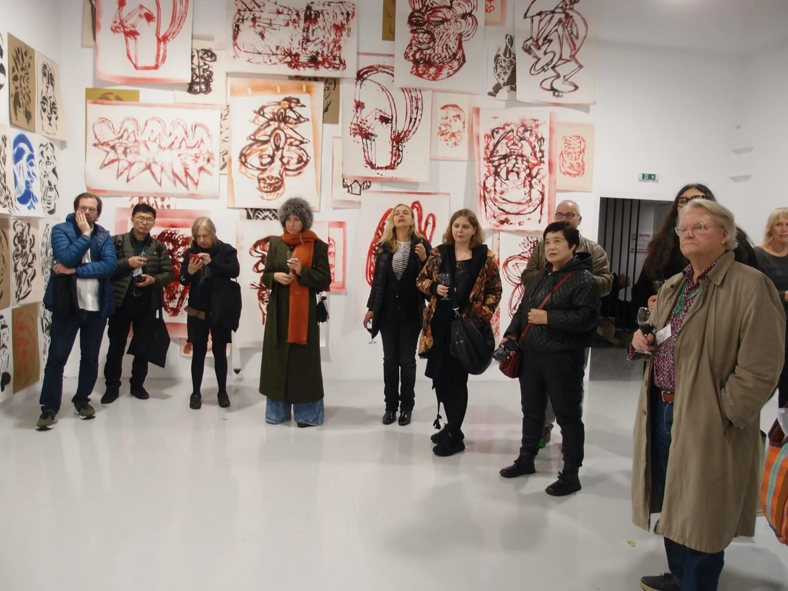 View from Dumitru Gorzo’s exhibition at Borderline Art Space in Iaşi These are not drawings. Kimmo Sarje, professor emeritus, AICA Finland, on the far right