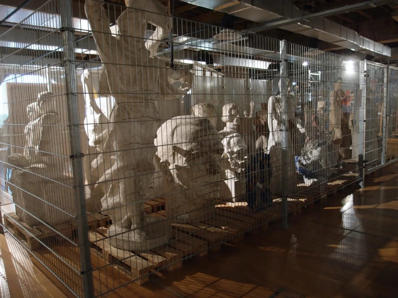 The permanent exhibition Leviathan. In the Guts of the Collection at the MNAC invites the public to its labyrinthine museum storage, with an eclectic sculpture collection shown behind screens of transparent galvanised metal mesh.