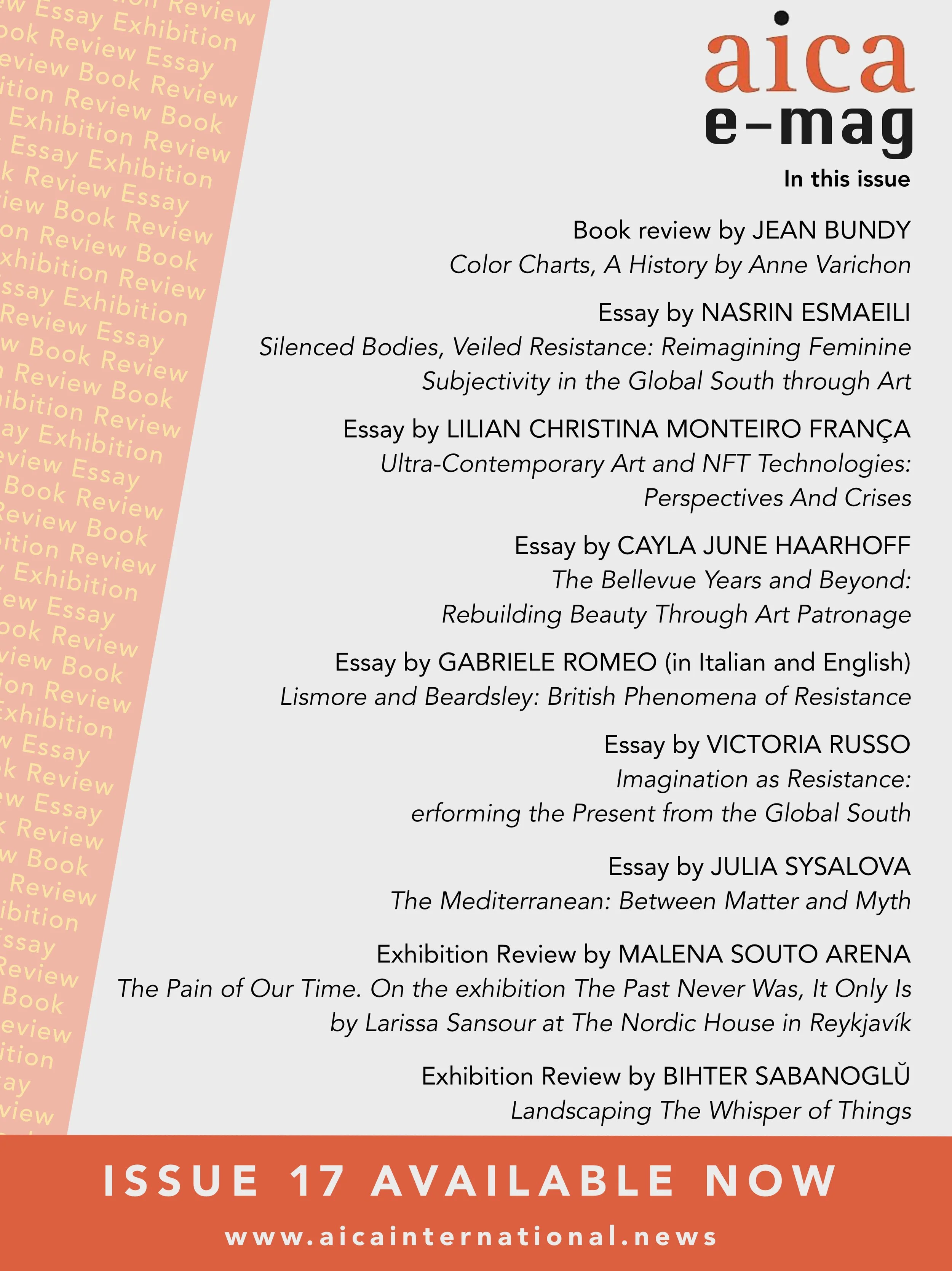 This issue of AICA E-Mag brings together essays and reviews exploring how art and visual culture shape meaning, from colour and perception to identity, place, and power. Contributors move between historical foundations and urgent contemporary questions, offering fresh perspectives across exhibitions, books, and cultural debate.