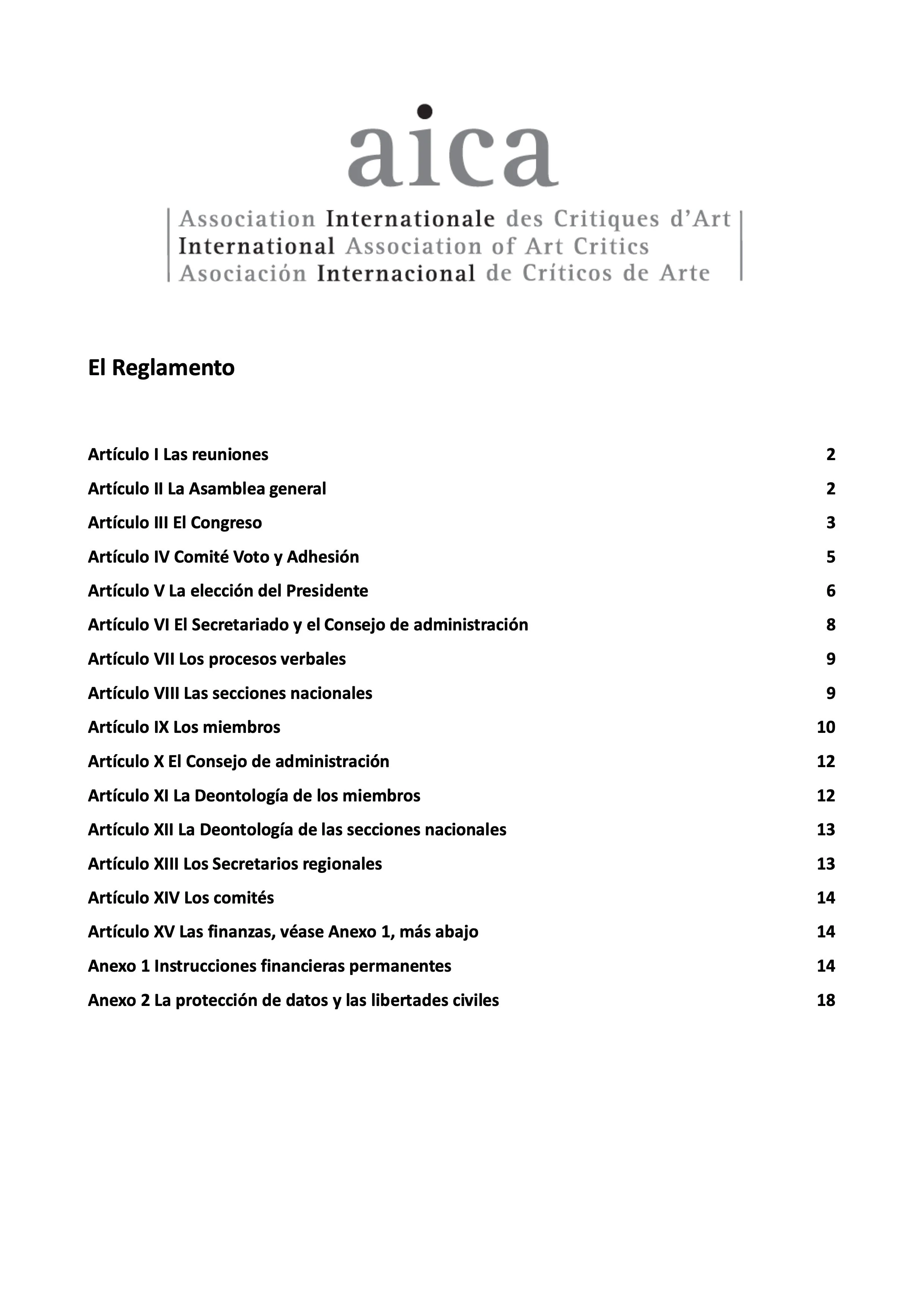 XIV.6 Los comités deben presentar informes a intervalos regulares al Consejo de administración y, a continuación, a la Asamblea general ; los esbozos, el proceso verbal y los informes se publican en la sección reservada a los miembros en el sitio web de AICA Int., véase Artículo VII, más abajo.
